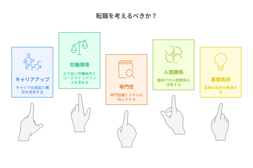 薬剤師が転職を考える理由は様々です。例えば、キャリアアップを目指したい、労働環境を改善したい、または専門性を高めたいといった理由があります。また、転職を考える場合、現在の勤務先での人間関係や業務の負担を理由にすることも多いです。このような理由をしっかりと分析し、自分が求める条件を明確にすることが重要です。
