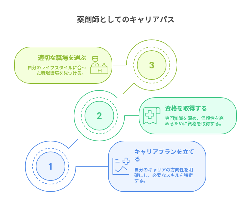 薬剤師として働く上で、長期的なキャリアプランを考えることは非常に重要です。自分の目指すキャリアの方向性を明確にすることで、必要なスキルや資格を取得するための計画を立てることができます。また、定期的に自分のキャリアを振り返り、必要に応じて見直すことも大切です。