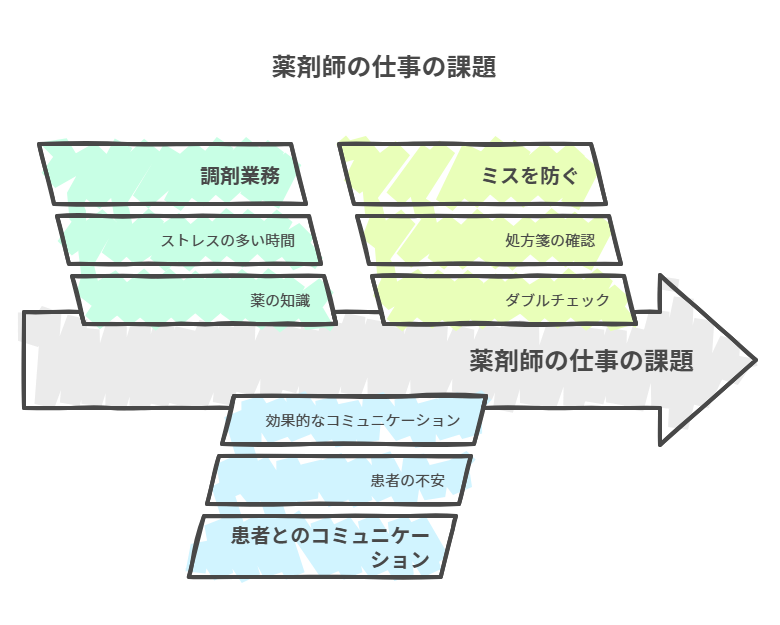 薬剤師の業務は多岐にわたりますが、その中でも調剤薬局での調剤業務や、病院での業務は特に大変です。調剤業務では、患者さんの処方箋に基づいて薬を調剤するため、薬の種類や用法についての専門知識が必要です。また、処方される薬の相互作用や副作用についても正確に把握し、適切な提案を行う必要があります。このような業務は、特に多忙な時間帯に行う際にストレスが多く、大変な場合があります。