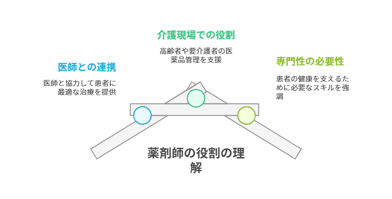 介護現場においても、薬剤師の役割は重要です。高齢者や要介護者に対して、医薬品の適切な管理や服薬指導を行い、健康を支えることが求められます。介護施設での薬剤師は、医療チームと連携しながら、患者一人ひとりの状態に応じた適切な医薬品の提供を行います。このように、薬剤師は医療だけでなく、介護の分野でも大きな影響を持つ存在です。