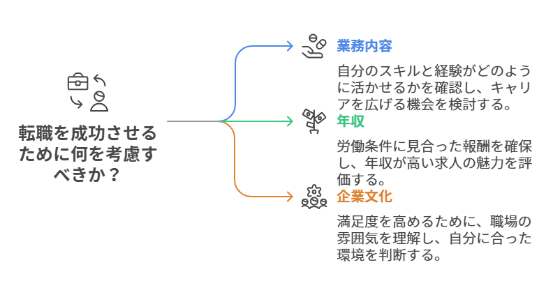 自分に合った企業を選ぶためには、自分の価値観やライフスタイルを明確にすることがポイントです。年収や業務内容だけでなく、職場の雰囲気や人間関係の良さも考慮し、自分が安心して働ける環境を見つけることが大切です。具体的には、自分が働きやすいと感じる企業の特徴をリストアップし、それに合った求人を探すことで、後悔のない選択を実現することができるでしょう。