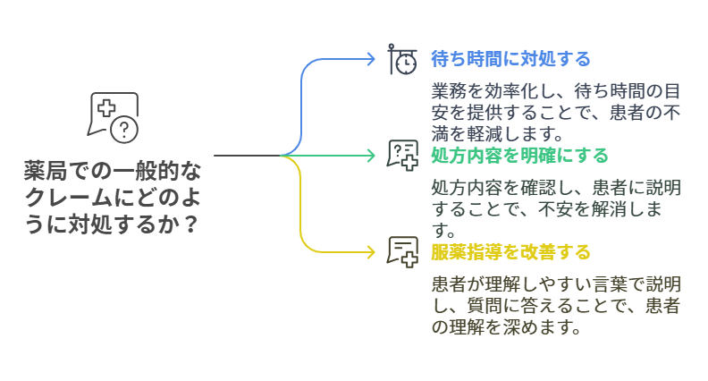 苦情を受けた際には、まず冷静に状況を把握することが重要です。患者からのクレームを受けたら、直ちにその内容を確認し、必要に応じて上司や同僚に相談します。具体的な対策としては、薬の在庫管理を徹底し、患者に対して適切な情報提供を行うことが挙げられます。また、苦情に対するフィードバックを業務改善に活かすことも、クレームを減少させるための効果的な策です。