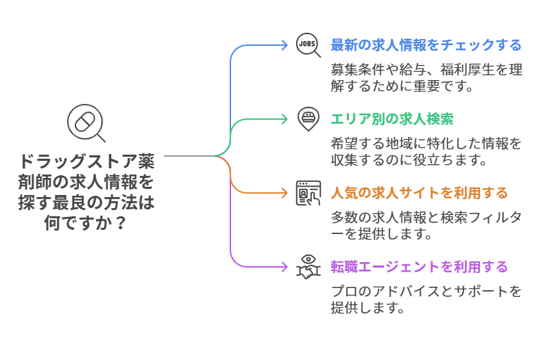 ドラッグストア薬剤師の求人情報を探す際は、最新の情報をキャッチアップすることが重要です。求人情報は日々更新されるため、定期的にチェックすることが必要です。また、求人情報を探す際には、募集条件や給与、福利厚生の詳細をよく確認することがポイントです。これにより、自分に合った職場を見つけるための情報を効率的に収集できます。