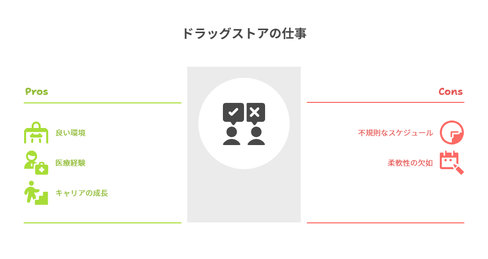 休日や勤務時間については、ドラッグストアによって異なるため、事前に確認することが重要です。特に、土日祝日も営業している店舗では、勤務時間が不規則になることがあります。そのため、プライベートの時間を確保したいと考える方には注意が必要です。勤務時間の柔軟性があるパートタイムのポジションを選ぶことも一つの選択肢です。