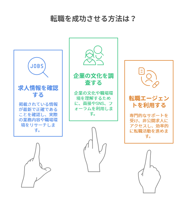 転職を成功させるためには、企業の文化や職場環境を調査することが不可欠です。面接や説明会での印象だけでなく、実際に勤務している薬剤師の声を聞くことが重要です。また、SNSや専門のフォーラムを利用して、他の薬剤師の意見を収集することで、より具体的な職場のイメージを持つことができます。